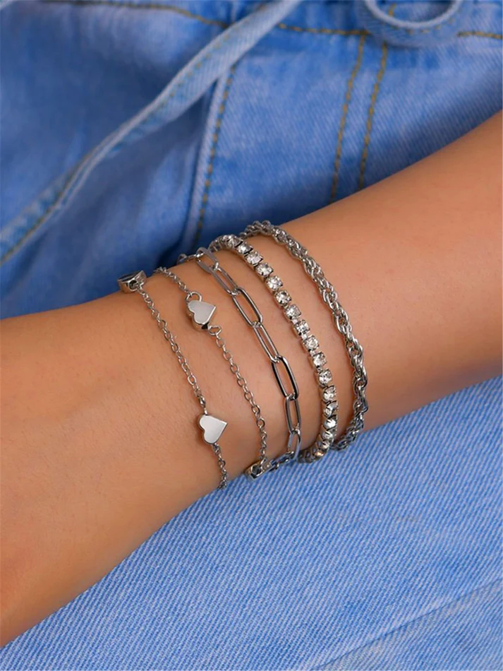 Rhinestone & Heart Decor Bracelet